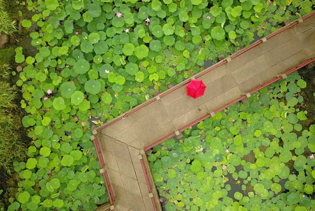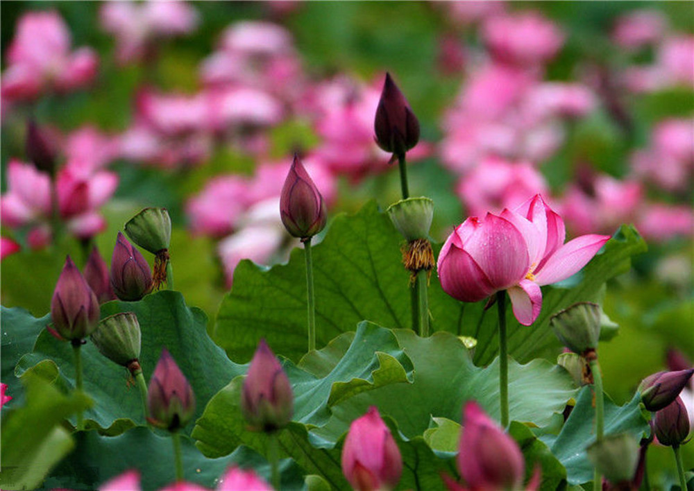 2018年6月19日,江苏省淮安市洪泽区东湖公园内荷花竞相开放。